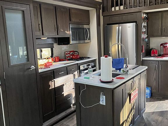 2019 Salem Grand Villa 42' destination trailer. Spacious Master bedroom slides out. Steps to a dual loft. Spacious bathroom. Large kitchen slides out with island, pantry, house type refrigerator, coffee bar, microwave and range top with oven. Features dining table and chairs. Living room slides out with theater chairs that recline, large flat screen TV with surround sound, electric fireplace with heat or just for appearance. Large sofa that can be pulled out for additional bed. 2 separate loft sleeping areas Unit has central vacuum and 2 ducted air conditioners. Glass sliding door steps onto Bi-level deck 12' x 42 with partial carpet, 12 x 12 carpeted screen room. Deck extension with rear steps. All vinyl and aluminum railing on main deck. More features, all on a lot that you own. A must see. MATTERPORT VIRTUAL TOUR:https://my.matterport.com/show/?m=3koQKRUy8Ua&mls=1 2021-09-29