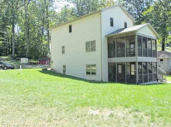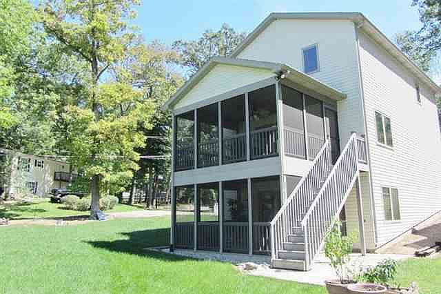Here Is the buy of the year???..Direct waterfront on 2 lots with 55 foot of channel and dock. 5 bedrooms, 3 baths, year round and only 6 years old??????.everything is like new. It???s perfect for entertaining with a full finished walkout lower level leading directly to the dock. The home was designed so it could be used as a duplex or rental. The lower level is all self contained with a full kitchen, living area, bedroom and full bath with its own private entrance. The main level consists of a full kitchen, living rm, dining area, master bedroom with bath, and laundry room. Sliders lead out to the private screened in porch to enjoy 3 seasons of outdoor living. The upper level has 3 bedrooms and a full bath. All of the closets are good size with closet tamers installed. Forced air heat and central air, water manifold distribution system, large 50 gallon water heater are all located in the utility room. This is a very nice home with so much potential for such a small price. To be on the Lake James Chain of lakes and to be direct waterfront with a new home for this price is unheard of. The vacant lot beside the home is included in the price. Build your own big boy toy garage plus use for additional parking.