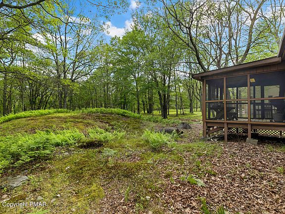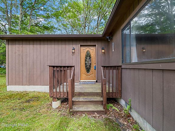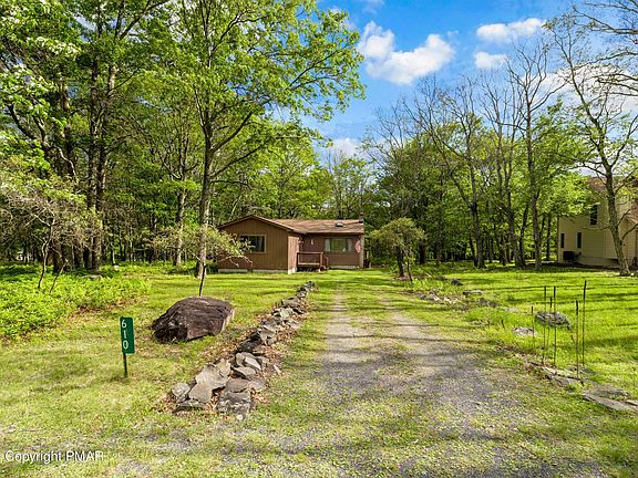 Your mountain escape awaits! Tucked away in the rustic Pocono Ranchlands community where you have access to pools & other recreation. This one level home was a beloved family getaway for 37 years! Enjoy the primary suite addition which provides a private respite from the rest of the house. Eat-in kitchen & appliance update done in 2024 w/new cabinets, marble countertop & new appliances - opens to the screened porch where you can relax up close to nature. Main living area is updated too w/tongue & groove ceiling, laminate floors, remote control skylight & a woodstove to ensure cozy evenings. Charm & affordability abound here. Act quickly & enjoy before summer's end!