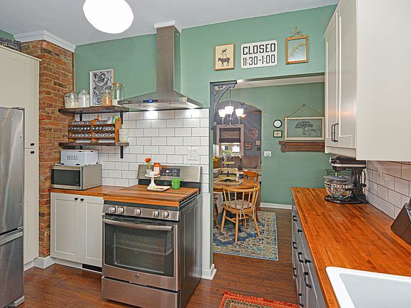 "Pinterest Perfect" bungalow in a quiet East Bloomington neighborhood! All the charm & character of an older home... AND all the UPDATES you want in a newer home! From the newer roof, windows, siding, HVAC, water heater & flooring to the gorgeous KITCHEN REMODEL in 2022, this 2 bedroom, 1 bath gem is MOVE-IN READY! This home radiates charm in every sq ft with the sprawling front porch to the 9 ft ceilings, arched openings, built-ins, custom trim, sliding barn door & new hardwood laminate flooring! The new gourmet kitchen is sure to inspire your inner chef with its stainless appliance package, rich butcher block counters, tile backsplash, wainscotting & high-end custom cabinetry (featuring soft close doors/drawers, 42" upper cabinets, a large pantry cabinet & all the bells & whistles)! The kitchen opens to the formal dining, which flows beautifully into the spacious family room! Updated bright & airy full bathroom! The unfinished basement is a pleasant surprise, with the open staircase that features decorative accents, built-in overhead cabinets that extend clear up to the ceiling & a charming landing with wainscotting. The basement also offers open & usable space that includes the laundry area with large mud-sink, ample storage, potential additional living space and a rough-in for future bath! The outdoor living area is an entertainer's dream with the privacy fence, brick patio, extended covered patio, beautiful new firepit & wonderful flow from the oversized 1-car garage. Convenient eastside location close to Oakland Elementary School. Updates include: Flat Patio Roof (2021), Roof (2018), Porch/Vinyl Siding (2016), Water Heater (2021), Kitchen Remodel (Jan 2022), Bosch Dishwasher (2022), AKDY Range Hood (2022), Whirlpool Fridge (3 years old), Adora Gas Oven/Range (3 years old), Front Porch Steps (2014), Radon Mitigated (2014), Bathroom Remodel (2012), Windows (2009), Insulation (2007), Front Door (2007), Hi-E HVAC & Humidifier (2006) & more! A MUST SEE HOME that is PRICED TO SELL!