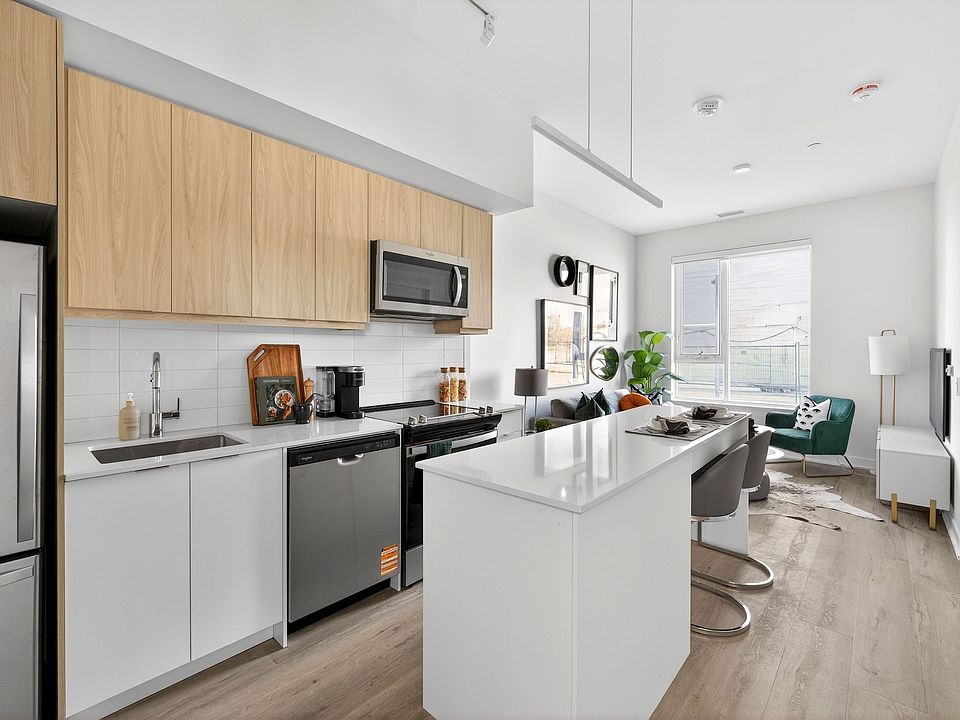 Open-concept layoutsExpansive windowsQuartz countertopsCeramic backsplashKitchen islandFour stainless steel appliancesConvenient in-suite laundry