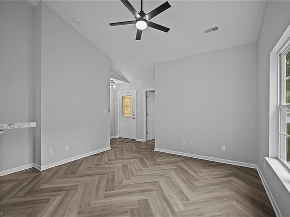 Introducing a charming 3-bedroom, 1-bathroom home that has been recently renovated to perfection. Nestled on a peaceful cul de sac with a picturesque wooded backdrop, this property offers a serene sanctuary for its residents. Step inside to discover an inviting open floor plan that seamlessly flows from the newly renovated kitchen boasting granite countertops, a farmhouse stainless steel sink, and a cozy eat-in area, to the elegant LVP herringbone floors and updated light fixtures throughout. The three bedrooms are thoughtfully designed and share a newly renovated hall bath featuring a luxurious garden tub, a modern shower, and a double vanity. Outside, a patio overlooks a private backyard, providing the perfect spot for relaxation and entertaining. Located in a desirable area, this home is not only aesthetically pleasing but also offers convenience and practicality. Don't miss out on the opportunity to own this adorable gem.