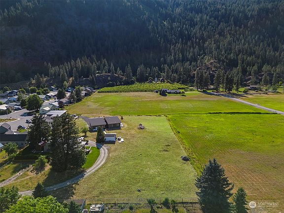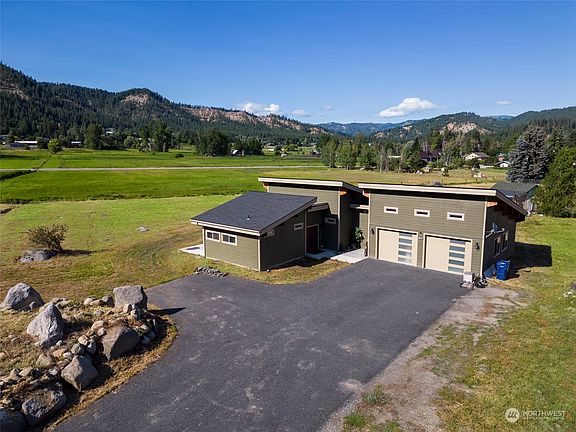 Looking for a rare in-town investment opportunity? This unique property offers two perfectly level acres showcasing panoramic views of Tumwater Mountain, the beautiful Mottler fields, and lovely Ski Hill. The newly built, 1250 sq ft rambler showcases open/modern architecture with soaring ceilings, massive glulam beams, concrete flooring, a private primary suite, a guest bedroom, a luxurious 2nd bath, and an oversized garage. Soak in the views from the patio or hot tub. A "shed" is ready for its final touches. Make this your easy-care Leavenworth escape, build a larger dream home, or consider the future development opportunities this property’s zoning affords!