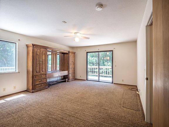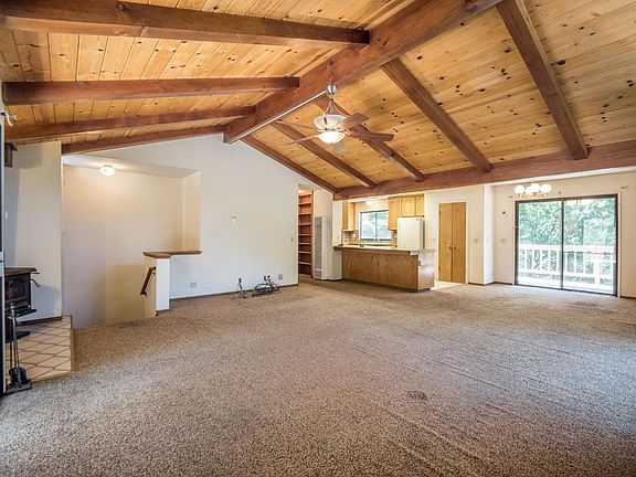 Wow awesome price for 4.82 Acres of privacy w/Great Sunny views and areas for gardening. Large 2395 sf+ home with options for separate single level Living up & down. Large open area as you first turn in. Huge rear deck and side decks. Lots of parking. Large Living area up stairs with separate entrance Large Primary Bedroom w/ huge walk-in closet, 1/2 bath in hall. Lower level could easily be 2bed, 2bath separate area for kids/in-laws?. Large garage with workshop space. older fruit trees. Paved private driveway. LARGE lower area as you come in .. possible ADU area or RV/truck parking or horses?