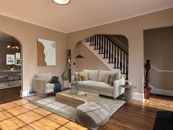 Simply adorable! This charmer has seen a total renovation over the last year including: shingles, windows, gutters, pavers, exterior paint, and doors. The inside had a facelift as well. You will appreciate the classic 1920's architecture with original hardwood floors, stunning arches, and now with modern amenities. Each bedroom has its own private bathroom. The home offers an option for laundry on the main floor and/or the lower level. There's a bonus room perfect for that home office, non-conforming bedroom, or oversized mudroom. The basement is unfinished but has a walkout and offers room for a 4th bedroom. Plenty of backyard space and room for off street parking in this great downtown location. The beautiful new front patio and landscaping are perfect for summer.