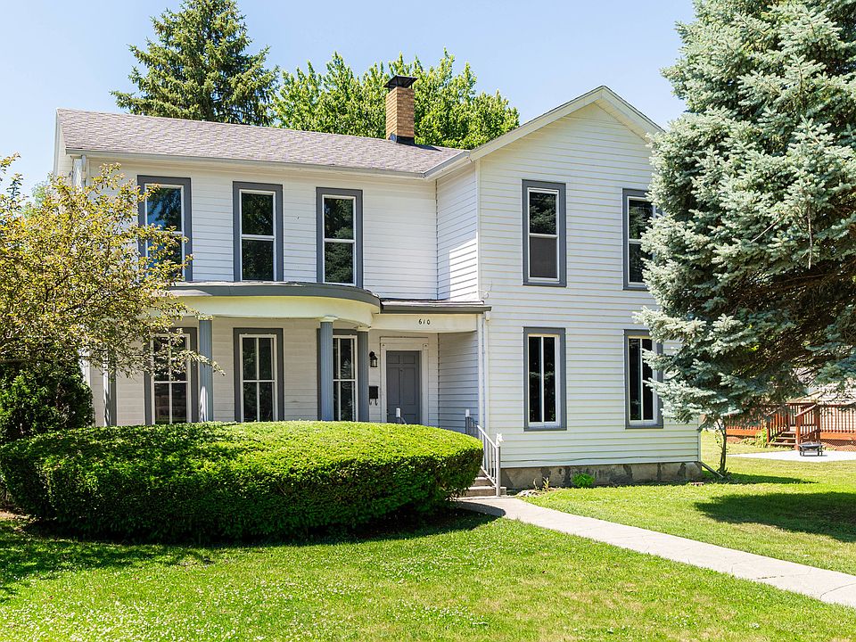 Picturesque 3 Bedroom, 2 Bath Home in Historic Rochelle. This charming home features a stone walkway leading to a circular stone front porch with elegant columns. Inside, you'll find a large living room, a formal dining room with a built-in display cabinet, and a family room that opens to a fenced backyard. The spacious kitchen includes hand-hewn cabinets, a breakfast bar, a cozy eating/sitting area with a brick-and-mortar fireplace, a plank and beam ceiling, and additional yard access through a charming Dutch-style door. The first-floor master bedroom offers convenience, and the second-floor laundry room adds practicality. Additional features include a garage and a basement perfect for a workshop. The home has been well-maintained, with updates to the air conditioning, furnace, roof, and water heater between 2006 and 2009. Property is being sold "As-Is." Don't miss out on this gem - it won't last long! Schedule your private showing at 610 North 8th Street today!