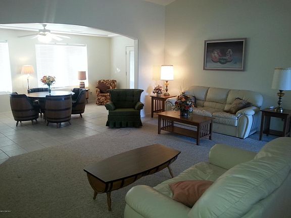Well maintained, one owner home! Beautiful front entrance and covered porch to enjoy awesome mountain/golf course views. Cozy kitchen with bay window. Spacious living area opens into AZ room. Roomy master suite with built in safe. Berber carpet, arched doorways, pot shelves, great storage. Huge 3-car garage with exterior door, windows and workshop. Circular drive offers plenty of parking. Enjoy a gorgeous, turnkey home and the Prescott Country Club amenities!
