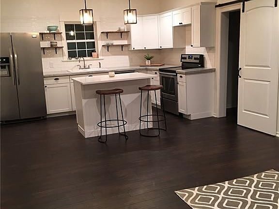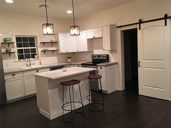 This beautiful house is 100% move in ready!! It is in perfect condition from the 2016 full re-model. 1159 sq ft. 2016 re model included: new shingle roof, new siding, new electrical and plumbing, new flooring, new sheet rock, texture and paint throughout, new appliances included, new central heat and air, walk in shower, white subway tile back splash with beautiful custom concrete counter-tops in kitchen, kitchen island with large amounts of storage, new cabinets, sliding barn door to master, new privacy fence, new retaining wall with flower beds, picturesque curved front porch. You must see this house to appreciate the spacious rooms and open floor plan. Large laundry room, new hot water tank and central heat and air that works great. Electric bills very reasonable. You will fall in love with this house the minute you see it and you won't need to change a thing. Inspection ready!
