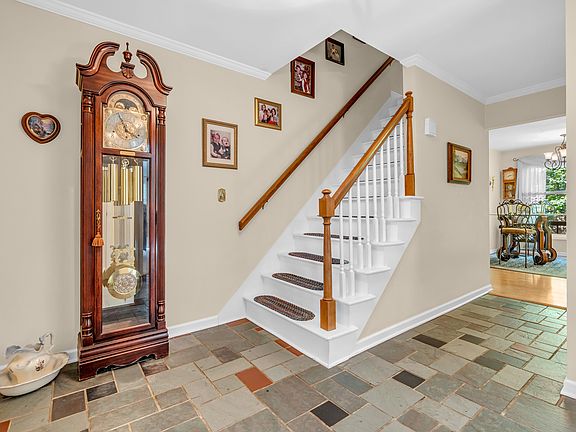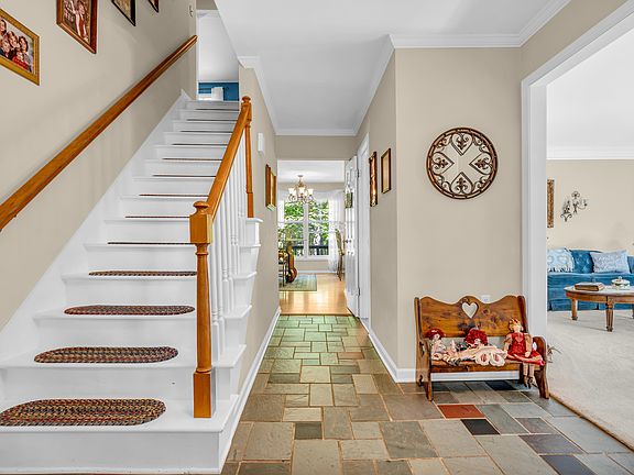 Welcome to this beautifully designed 4 bedroom home offering formal living room & a large family room with built-in book shelves & wood burning fireplace. You will love the eat-in kitchen & formal dining room, so much space for everyone. The sunroom is large & a great view of the fenced back yard. Master bedroom offers large walk-in closet & master bath. Beautiful wooded land & covered front porch for your enjoyment.