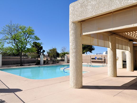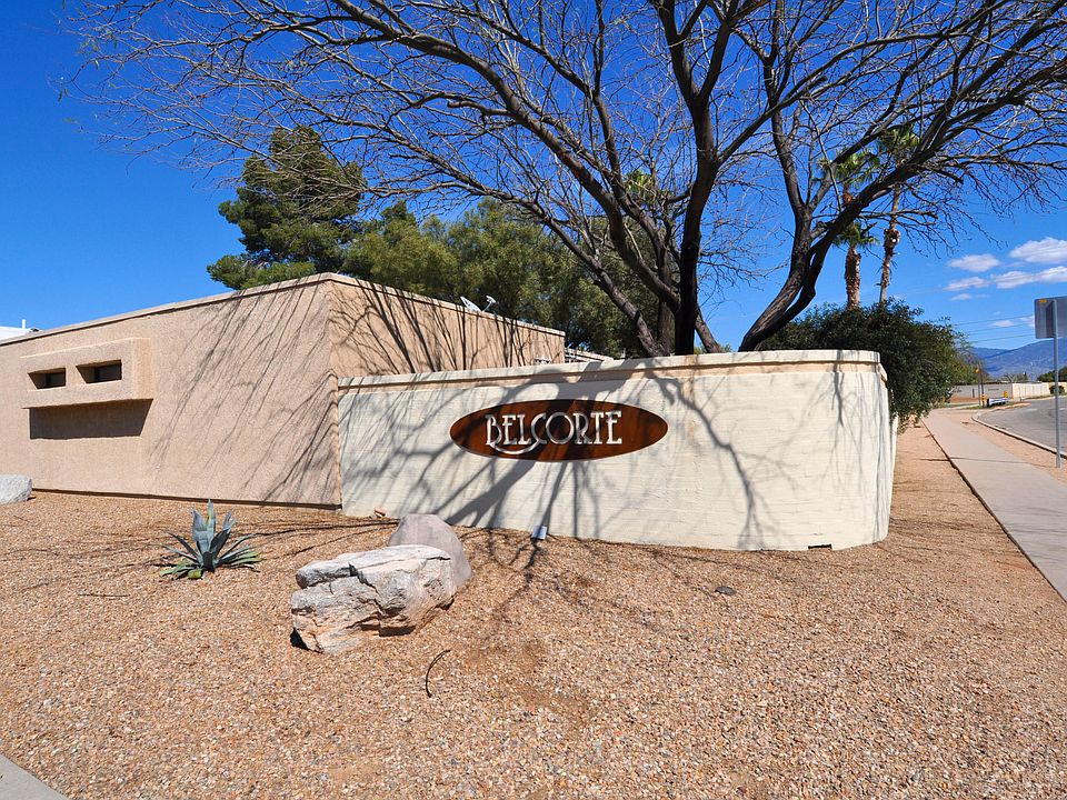 * VIEW VIDEO: https://az.movinghometour.com/22008954_Tucson%20MLS * Free-standing, CORNER LOT, END UNIT! 2 covered patios! Yard large enough for pets, projects and plantings! 2 CAR GARAGE with storage closet. Great Room Floor plan w/updated open, galley kitchen w/recent SS appliances! Living area has a fireplace. Skylights add light and efficiency! 3 Bedrooms PLUS a den off the living area! Defined dining space with built in window seat and china hutch. Updated wood laminate flooring with recent carpeting in BRs. Belcorte is an eastside enclave of 79 single story townhomes. Enjoy a great sense of community, sidewalks, lovely community pool w/cov seating area & tennis/pickleball court! Walk to shopping including Fry's supermarket! Hop on a bus or take a short drive to even more shops and services all within a couple of miles!