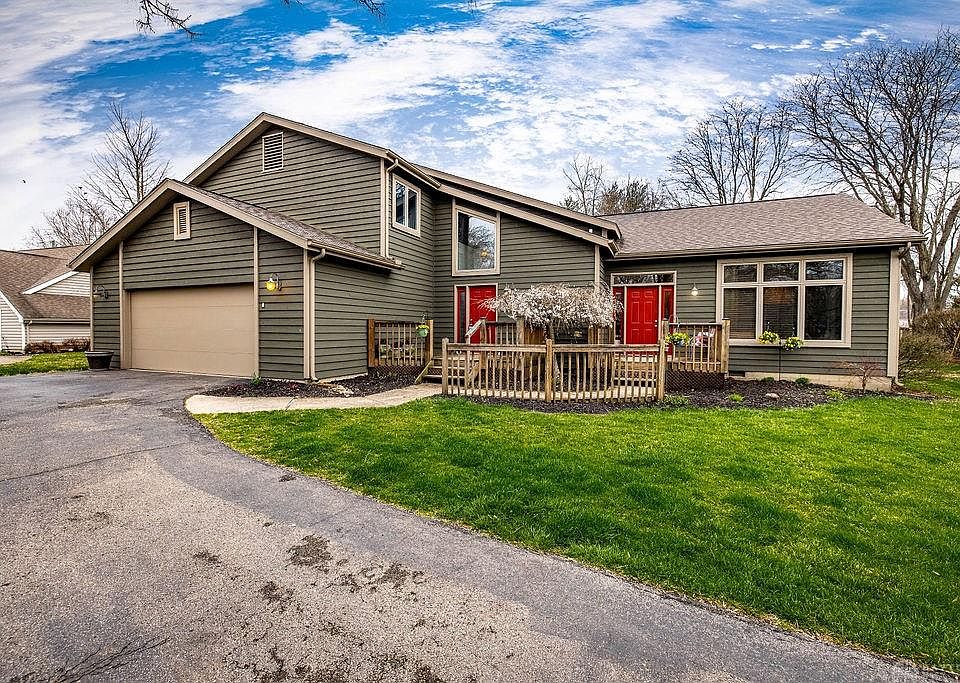 Looking for a large family home. Look no further. Beautiful partially wooded lot with creek. Cedar sided home. Beautiful 6 bedroom 3 full baths and 2 half baths on .775 acres with 3160 sf per county auditor and partially finished basement. Granite countertops, laminate wood plank floors, newer carpet, can lights and fresh paint. WBFP. Roof approximately 5 years old, newer Hvac. Large partially covered deck. Many more updates. Master suite for extended family on 1st floor with separate entrance and 36" halls and doorways kitchen and baths.