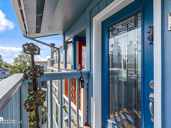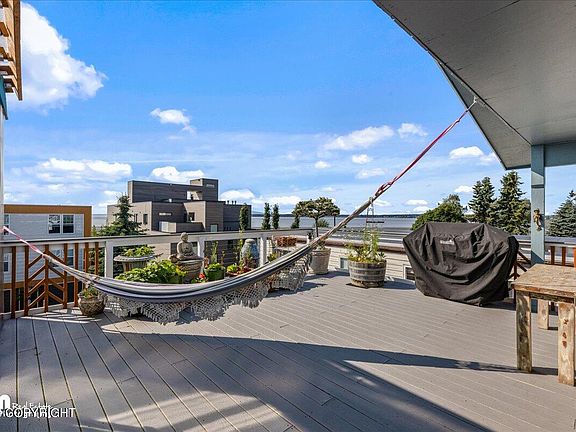 Experience downtown living at its best in this charming property nestled in Bootleggers Cove. This home boasts an ideal location with proximity to the Coastal Trail, restaurants, and venues, offering stunning views of mountains and water. Inside, the ambiance is relaxed and modern, featuring open spaces and abundant natural light. The kitchen is perfect for cooking family meals or entertaining.With spacious bedrooms and a versatile office/yoga room, accommodating weekend guests is a breeze. The bathroom is elegantly designed with a large tiled shower and a private window overlooking picturesque Denali and the Cook Inlet. However, the highlight is the indoor-outdoor living experience on the spacious deck, offering panoramic views of the neighborhood and Alaska Range. With a heated garage and attentive HOA, this home offers comfort, convenience, and tranquility.
