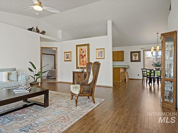 Welcome to the coveted Goldcrest Estates, an exclusive 55+ gated community in Nampa. Stay active and social w/ a host of amenities at the clubhouse, which features a fitness room, a library, a billiards area, a game room, and a fully equipped kitchen, dance floor, indoor pool, hot tub, pickleball, horseshoes, communal garden, and RV parking! Once home, you will be greeted by a split-bedroom design with vaulted ceilings, upgraded lighting, recent interior paint, and updated laminate flooring. The secondary bedrooms now feature plush new carpet, while the laundry room and guest bathroom sport fresh vinyl flooring. The kitchen features stainless steel appliances, breakfast bar, pantry, and a spacious dining area. Outside, this turn-key home provides a fully fenced yard with low-maintenance landscaping and room for your own garden beds and potted plants. Relax on the back patio as you savor the warmth of the eastern sunrise and the cooling shade in the evenings. So much to love at the wonderful community!