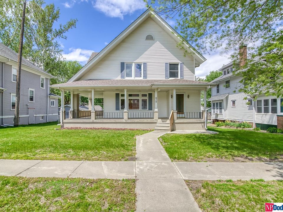 Charming traditional two story home with wrap around front porch featuring beautiful wood work throughout the main floor and upstairs. Freshley painted rooms with refinished floors on the main level. Kitchen comes with all new appliances, ample cabinetry and counters for preparing meals for family and friends. 4 bedrooms on 2nd level with the Primary suite featuring additional sitting area or additional closet or nursery space. The 4th bedroom has an additional bonus room for a large closet or could be reopened as it was previously a second level porch. So many possibilites with 3rd floor loft area to be finished to your liking. Basement offers a second family/living space as well as a non-conforming room, laundry, additonal storage and 3/4 bathroom. Radiant heat throughout the majority of the home, as well as one room with electric baseboard heat, & new window A/C unit on main floor. In the backyard you can enjoy an additional screened porch or patio to enjoy a morning cup of coffee!