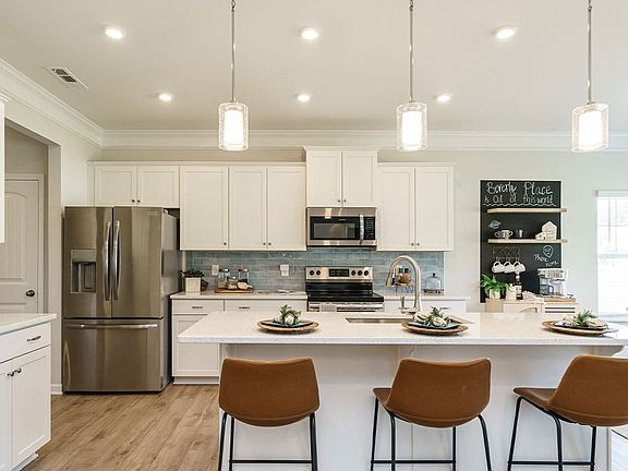 The Lancaster at Hampshire Hills by Smith Douglas Homes. The Lancaster is a ranch home that has it all. Coming into the home, you'll find a flex room that can be a living room, formal dining room, study, or fourth bedroom, depending on your needs. In the central portion of the house, the family room, kitchen with a large center island, and breakfast nook flow nicely onto the covered back porch. You'll also find plenty of household storage space and a large functional mud room just off the garage. The owner's suite boasts a huge walk-in closet, and the secondary bedrooms are given privacy with a separate hallway entrance off the home's foyer. As a bonus, a bedroom can be added over the garage.