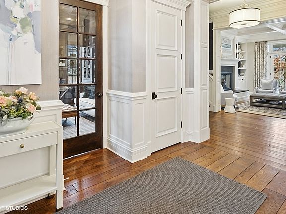 Exceptional in every way! Location, location, location! No detail has been spared in this impeccable custom stone home in east Winnetka on a gorgeous lot just steps from Lake Michigan, the Village Green, town, train and schools. The large entrance hall welcomes you to the 1st floor with a spectacular Christopher Peacock custom kitchen (with marble and granite counters, 2 dishwashers, SubZero wine storage, drink fridge, walk-in pantry, built -in breakfast seating, walnut butcher block) and beautiful family room with fireplace and an ideal flow to outdoor covered terrace and a patio with fire pit and seating wall. Also on the first floor is an elegant dining room with butler's pantry (Christopher Peacock) and an inviting library with fireplace and rich finishes. The mudroom and first floor laundry are adjacent to the 2 car attached garage. All hardwood is hand scraped, live sawn white oak. The second floor features an exquisite primary suite with private balcony, luxurious marble bath, steam shower, whirlpool tub, heated floor and large walk-in closet for two. Also on the second floor are three additional bedrooms and two more gorgeous baths and a bright and spacious laundry room. The third floor retreat can be used as an additional bedroom with full bath or as a delightful private office. Baths on 2nd and 3rd floors have heated floors. The lower level is fabulous with a second family room with fireplace, entertaining bar (with wine fridge, dishwasher and beverage fridge) plus space for game tables. Also in LL is an incredible theatre, a fantastic sport court plus a private bedroom and full bath. A powder room and arts and crafts room are wonderful lower level bonuses. The professionally landscaped property is magnificent with large patios, covered porch, fire pit and lush plantings with lighting throughout. The additional detached 2 car garage adds yet more convenience to this incredible property. A spectacular home and property for those with discerning tastes who appreciate perfection.