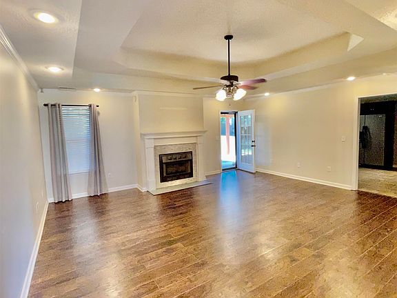 Picture perfect 3 BR/2 BA brick home in lovely Oakview Estates in Killen has curb appeal galore! The house is over 2000 sf, with not an inch of space wasted. Its thoughtful, split floorplan features an oversized living room and master suite with deep double tray ceilings and recessed lighting, a very roomy eat-in kitchen with warm oak cabinetry & tons of counterspace, a dining room with french doors (may even be used as a home office or study), master bathroom with large Whirlpool tub and separate walk-in shower, as well as jack & jill vanities. The home is entirely carpet-free, with ceramic tile, hardwood, and wood laminate throughout. The backyard is incredible, with a huge memory-making oak tree, a wooden children's paly house plus a patio with a newly-built pergola and full outdoor kitchen setup. Truly a special home.