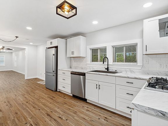 Gorgeous, newly remodeled house with vinyl plank throughout the entire house..New shiplap on living room ceiling and walls..New Bathrooms.. New appliances all go with the house..2.5 bedroom..Metal roof and all new pvc and pex plumbing inder the house..No bank qualifying or credit check if you can't get a bank loan at this time..