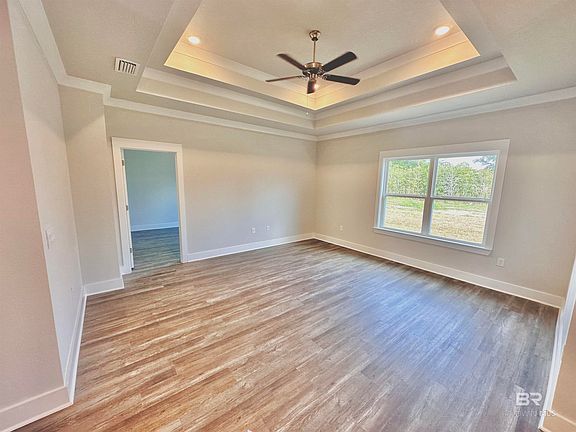 Welcome to this charming 1,835 sq. ft. Rhett plan in the brand-new Overland community in Fairhope. Completed and ready for you to move in! Boasting 4 bedrooms and 2 bathrooms with an open living concept. The upgraded trim package adds a touch of elegance, while the upgraded landscaping creates a picturesque setting. Enjoy your morning coffee on the inviting front porch or the covered back porch, overlooking a serene tree-lined view. Situated close to downtown Fairhope, you'll have easy access to shops, restaurants, and the beauty of Mobile Bay. This home is being built to the Gold Fortification specifications and can save homeowner's up to 50% on their annual homeowners insurance costs. The home comes with a 1-year builder warranty, 10-year structural warranty, 2-year electrical and plumbing warranty and more.