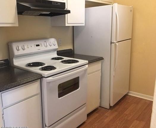 Large Condo with living room, dining room and kitchen open. All appliances including stove, refrigerator, dishwasher, disposal. Split floor plan, each bedroom with separate bath and walk-in closet. Laminated floors. Washer/dryer hook ups, ample parking.