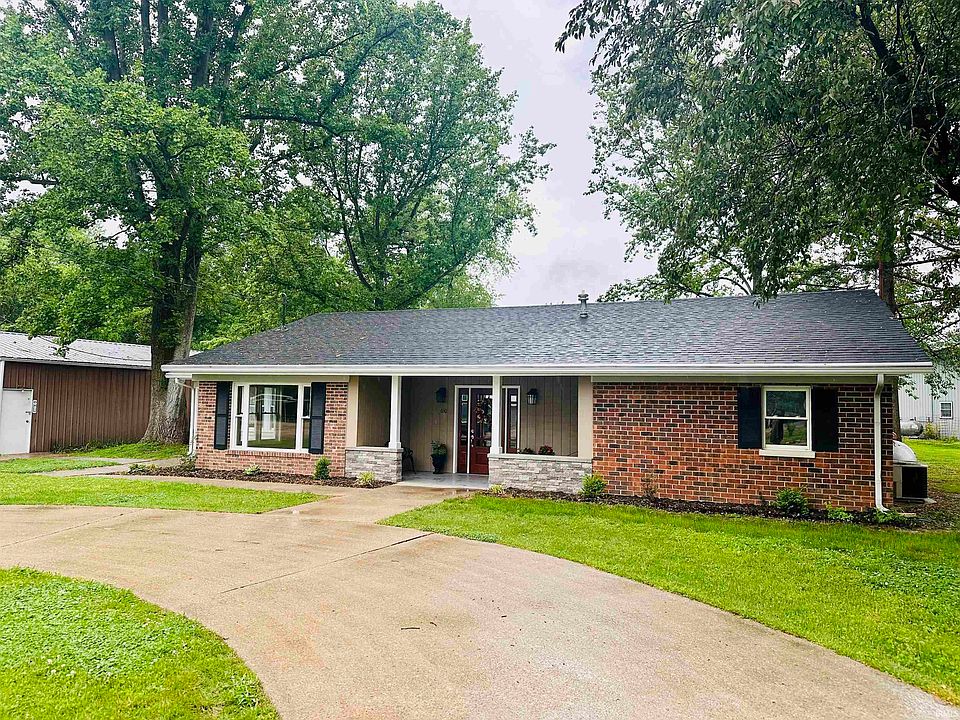 This picture perfect, Posey county home, located on Pine Tree, offers wonderful water views of the Ohio River just outside its front door! This charming brick ranch home with a brand new roof, is nestled on a corner lot, featuring a horseshoe driveway, a 30x40 Pole barn, and so much more! While inside, you will quickly see this home in its entirety, has been remodeled and updated with beautiful finishing's and features throughout. You will fall in love with the character and magazine worthy rooms offered; like the gorgeous kitchen with eat at center island, large living room with wood stove, spacious sunroom full of windows, the one and a half baths, and of course the front covered porch which is more like relaxing on a getaway somewhere!! Other mentions include; Fenced back yard with large open patio, Pole Barn has electric, three over head doors, all with side entry, main level living at its prime!! All of this and nothing to do but pack as Seller is offering immediate possession!