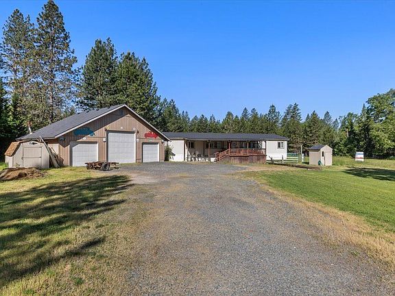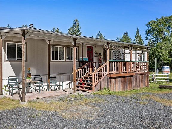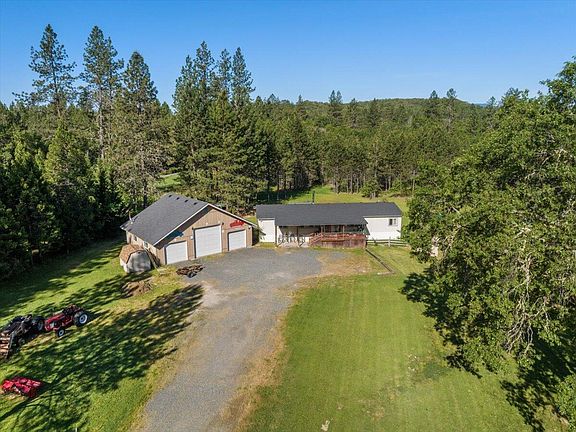 Escape to country living on over 4 flat acres and minutes to town! This well cared for 3 bedroom, 2 bath, 2000 model, modular home has brand new updated windows, sky lights, roof, dishwasher, fridge, snap in laminate flooring and many more new items throughout. 2 wells, one is Aprox. 30 GPM. Large. 34x42 shop is equipped with a car lift, 220 electric, airline reel & compressor and even a bathroom and wood stove. Perfect for a project minded owner. Sale includes 2 tractors and implements, (plow, rototiller, 2 disks, and wood splitter) an extra storage building (10x12). Possible 3 spot RV parking outside with 30 Amp service. Fully fenced and has a wooded area, with pine, ponderosa, oak and madrone. Even a seasonal pond. A certified wood stove for heating back up. Many fruit trees including plum, apple, pear and grape selections! Property is fully fenced and flat and easy to maintain. Gated entry adds extra security! Quiet neighborhood and enough land to stretch out. Come check it out!
