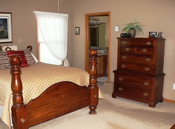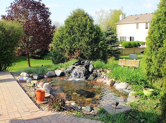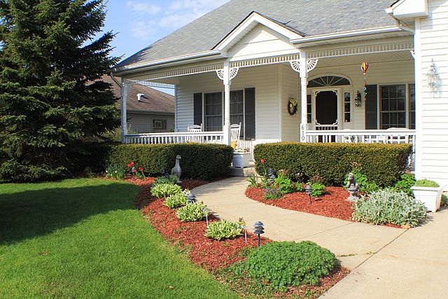 Get ready to feel right at home when you enter this sunny & bright custom ranch w/ split floor plan! Huge covered front porch to enjoy your morning coffee. 9 foot Ceilings w/ arched doorways. Cozy up to the beautiful gas fireplace in your family room. Spacious master offers walk in closet and a master bath with Jacuzzi tub, separate shower & two separate sinks! Two spacious secondary bedrooms! Large gourmet kitchen w/ hardwood floors, recessed lighting, new stainless steel appliances & pantry. Paver Patio that over looks a pond & beautifully landscaped yard. Need some shade...then open up the Sun Setter Awning. Main floor laundry w/ Built-In Sink, new HE washer and dryer, counter & wall to wall cabinets! Finished basement with a bar, recreation area, 2nd fireplace and a bathroom! Central Vac! Whole house wired speaker system. Huge heated 3 Car Garage! Come see for yourself all this home has to offer!