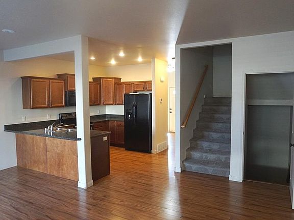 Lots of great space! Open floor plan with approx. 9' ceilings on main floor. Living room/kitchen/dining area on main floor (plus laundry & 1/2 bath), sliding door to patio, upper level has nice master bedroom with private bath, 2nd bedroom/bath up. Lower level has family room, bed & bath. Great storage & nice walk in closets. No sign.