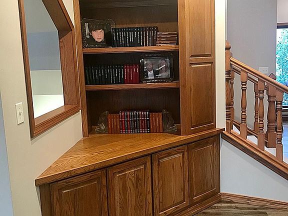 One owner, custom built home now available. Beautifully tucked away on a tree filled lot at the end of a cul-de-sac, this special property has 4 bedrooms, 3 1/2 baths and beautiful double natural stone fireplace. Large living room, hearth/breakfast area in kitchen with gorgeous wall of windows on the back of house. Sparkling L shaped pool with diving board all surrounded by cool concrete deck. Master bedroom is located on the first level with large master bath with separate tub and shower area. Level 2 has 2 large bedrooms with skylights for lots of light and full bath, lots of closet storage here. Basement has bedroom 4, full bath, large rec room and family room. Reclaimed barn wood wall and bar area with refrigerator and sink for entertaining. Great storage with 3 car attached garage and 2 car detached! So much in this house, you'll need to call for an appointment to view!