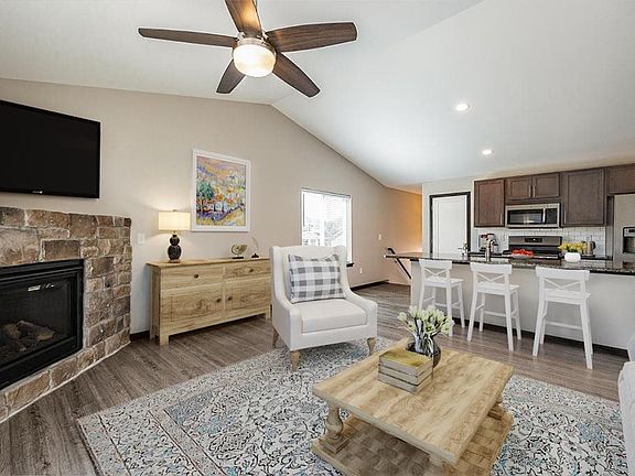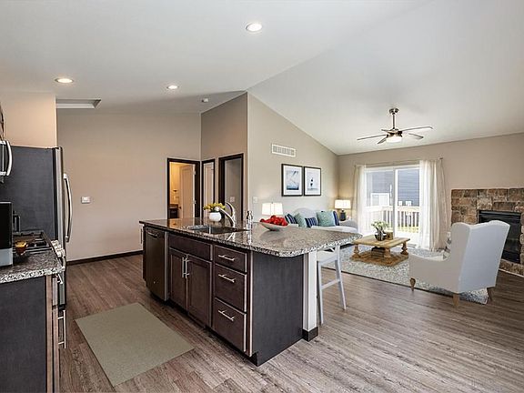 Built in 2019, this fresh open floor plan fills with natural light and provides upscale finishes throughout. Two areas for congregation- main level living room and lower level Rec room. Vaulted ceilings, luxury vinyl plank flooring and granite countertops. Primary bedroom features adjacent walk-in closet and bathroom with dual vanities. Lower level bedroom features full bathroom, nearby laundry and access to attached garage. With exterior maintenance and street maintenance, you'll love the convenience and ease of living in this well built condo. Small town living with access to everything. Easy drive to IC/Cedar Rapids. Robust opportunities for living & dining just steps away.
