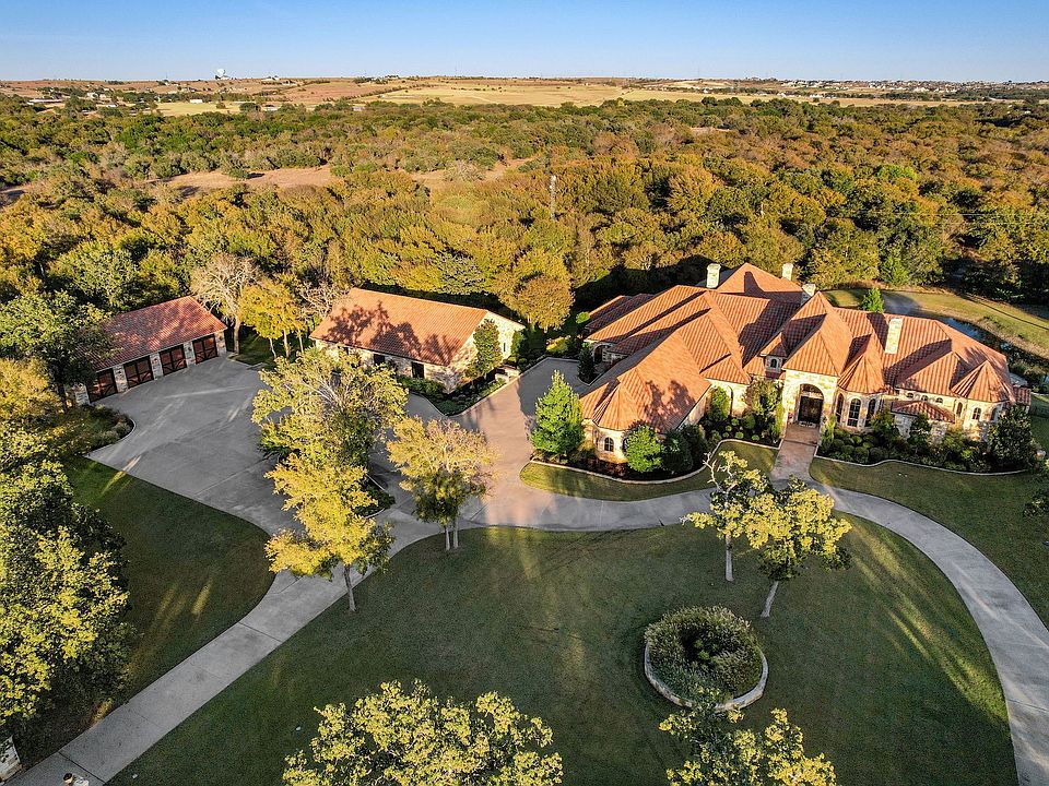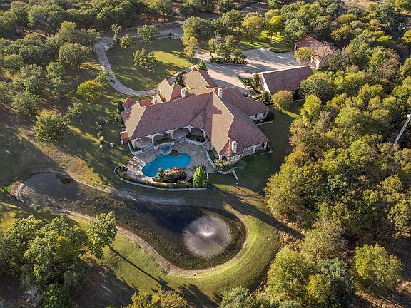 Tucked quietly behind the curve of Kelly Road, River Ranch Road is one of Aledo’s best-kept secrets - a “if you know, you know” enclave of only 13 estate-like residences that lead back to the Clear Fork of the Trinity. Beyond the understated entrance towards the end of the road lies a property that perfectly balances privacy, scale, and sophistication. Set on just over 9 acres, this single story 6,996-square-foot main residence was built in 2013 and captures timeless Texas elegance, with a sparkling pool, large pond with a fountain, surrounded by mature trees, teeming with wildlife and mature whitetail deer. Inside, the expansive living space boast 4 bedrooms, an office, 2 living rooms, a sitting room, a bonus room, and it all flows seamlessly outside to over 2,000 square feet of covered back patios, framed by graceful stone arches that overlook fantastic pool and outdoor entertaining area, ideal for both quiet mornings and lively gatherings. A detached four-car garage and a standalone gym add flexibility and room to grow the already impressive property’s footprint. The gym has ample space and could easily be reimagined as a guest house or secondary residence, offering endless possibilities for multigenerational living, work, or leisure. This is a rare opportunity to own one of Aledo’s most exclusive addresses where every detail, from the setting to the craftsmanship, is designed for those who value space, privacy, and understated luxury. Located just 5 minutes from BlueJack Ranch and 10 minutes to town.