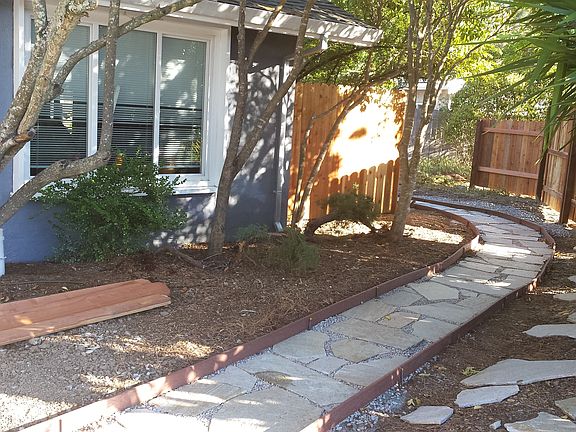 Front and side entrances onto garden areas. Separate wet bar and extra bath in side unit can offer private living space for a teen, guest, or inlaw, or just more privacy for family members. Solar cell array and car charger features, with solar proving most of home's power needs.