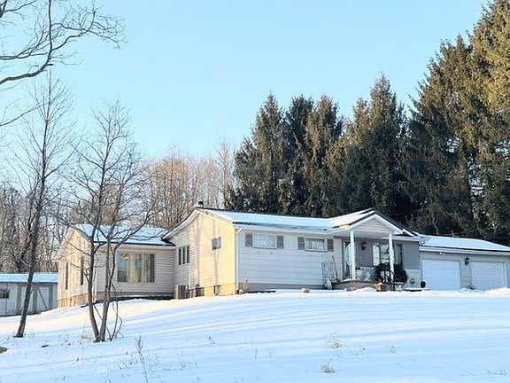 Larger than it looks . Over 2100 square feet of first floor living space. The cozy living room features a stone accept wall. The galley style kitchen features an electric stove top and plenty of cabinetry. The dinette area is ample, and is the perfect place for intimate dinners. Down the hall, there are two bedrooms that are connected by a set of French doors and a full bath with garden tub, separate shower area and double vanity area. Off the dinette area, step down into a dining room that is large enough to host all family holiday dinners. There is an oversized family room with a wall of windows that overlooks the private back yard. To the left of the dining room is The Master Suite. Two sets of double door closets and a half bath provide both function and practicality, along with dressing area. French doors open to the 20 x 28 Master Bedroom featuring Palladium windows, a propane fireplace and ceramic flooring. A separate retreat for the King & Queen ! On the lower level is an open concept family room with propane stove and a summer kitchen.This is the perfect place to watch all sporting events. There is a large two car garage and a shed included. The owner just installed a metal roof on the home, too. All this is being offered in thr Shenango School District.