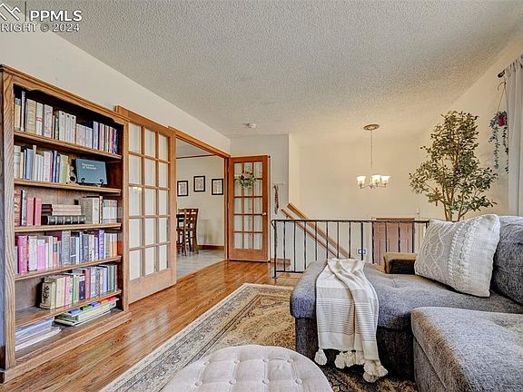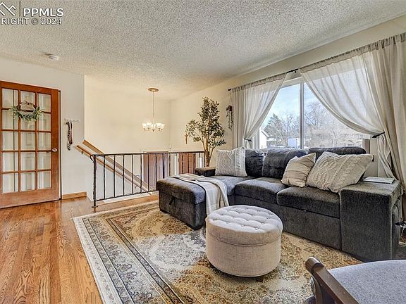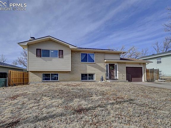 Charmer in the southern part of Colorado Springs!! Walking up the stairs to the upper level the home has beautiful hardwood floors and large windows basking the living room in natural light. Gorgeous wood french doors separate the living room from the eat in kitchen allowing for a more open concept feel or privacy between the two space. The dining area walks out to the covered back patio which provides stair access to the spacious back yard. Two raised beds for a garden are already in place for the avid gardener. Back through the dining access door the kitchen has gorgeous stainless steel appliances and ample cabinet space. The upper level also boasts two bedrooms and a full bath including the primary bedroom. Walking down to the lower level the family room stretches the expanse of the space allowing for myriad options. The wood finish tile flooring throughout the downstairs compliments the brick framing the wood burning fire place on the far wall of the family room. The fireplace creates that cozy feel that only comes from a wood burning stove which is perfect for Colorado fall and winter. The downstairs has bedrooms three and four as well as the second full bathroom. This home is ideal and the location is even better as it is minutes away from Fountain Creek Regional Park and the Bluestem Prairie Open Space with endless hiking/walking trails. The location provides easy access to I25 and Fort Carson military base and is moments away from shopping.