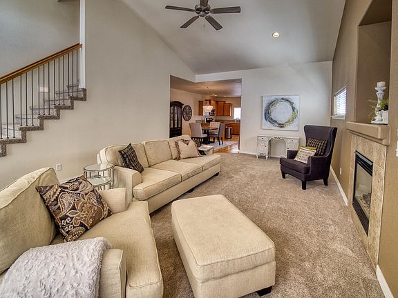 This 2 story home offers main level living with a large open kitchen, granite counter tops, fireplace, 3 car garage, and hardwood flooring. Upstairs includes 2 bedrooms and a full bath. The finished basement includes a large family room, 2 bedrooms, bathroom, and storage room. Main level master bedroom gives you plenty amount of privacy. Centrally located in RC Ranch near Thunder Basin High School and Rec Center.