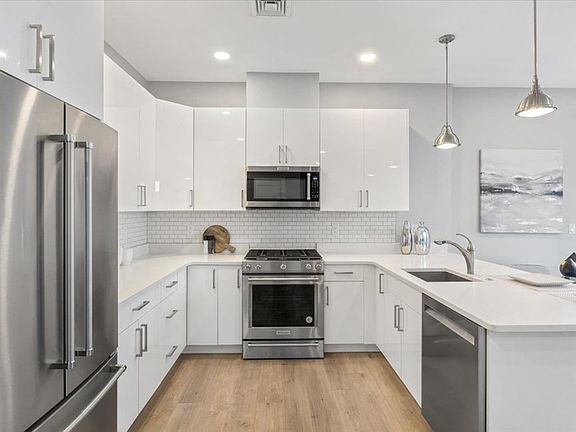 Luxury and elegance converge in this remarkable penthouse unit, perfectly situated in the heart of Charlestown, MA. With 2 beds, 2 baths, and 1209 sqft of thoughtfully designed space, this corner unit is the epitome of urban living at its finest. Vinyl floors guide you through the open-concept layout, leading to a gourmet kitchen adorned with stainless steel KitchenAid appliances, quartz countertops, and soft-close cabinets. The primary suite is a sanctuary with a walk-in closet and a stunning ensuite featuring dual vanities and a glass shower door. German-inspired glass doors open to a private patio, with the exclusive right to build a rooftop deck above. Modern amenities abound, including in-unit laundry and recessed lighting. With panoramic city views and the largest footprint in the building, this penthouse is a rare gem. Don't miss the opportunity to own a piece of luxury in this coveted neighborhood. Experience sophistication and urban elegance at its best