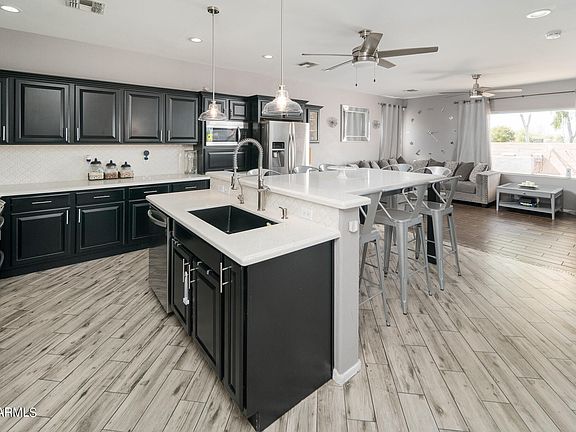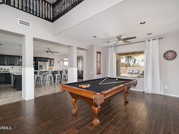 Open, bright and airy! This home is located in the community of Glenhurst in Avondale. 4 Bedroom, Loft, 2.5 bath, Pool, 2 car garage. Built in 2005 by Pulte and it consist of 2317 sqft. of living space. As you enter you will admire the tall ceilings and the wood railings throughout the loft and stairs, you will step into a huge room with a pool table. The Kitchen had been updated in 2016 with new and extended cabinetry , stainless steel appliances, drop-in black farmhouse kitchen sink and stainless steel faucet, extended island and set up as a large dinning table with bar stools(they will convey. The family room has a niche with a fireplace and space for a TV. The backyard has a pebble tech pool, waterfall, bistro lighting, covered patio with a Built-in BBQ , RV Gate.