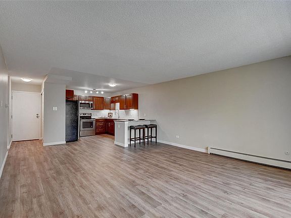 FULLY remodeled Contemporary interior condo, One bedroom on second floor professionally remodeled with a Modern Flair! Stunning open floor plan, with so many perks. Unit faces east, flooded with light, and pretty views of open courtyard. Stainless Steel appliances, contemporary cabinetry, breakfast bar added, with outlet for laptop or kitchen appliances. Beautiful bathroom, contemporary tile. Carpet & laminate floors (that look like wood) gorgeous granite counter tops, designer tile backsplash, additional contemporary lighting and fixtures. A full WALK IN Custom closet has been added, with contemporary barn door opening. Located near the historic Highline Canal. Easy to walk the dog! Extra storage closet in the building. HOA monthly fee includes, PROPERTY TAXES, heat, water & sewer, trash removal, exterior maintenance, and more! New energy efficient slider door has been added at sellers expense! 55+ community. Enjoy golf, classes, restaurant, clubs & fitness center.