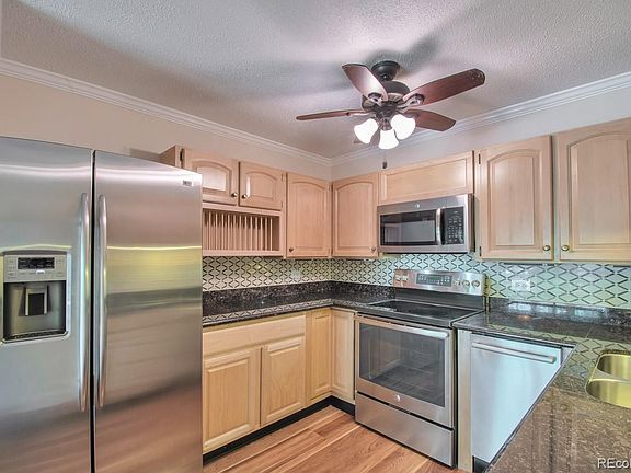 Come home to Windsor Gardens, Denver's premier 55+ active adult golfing community with all the amenities of a resort...golf course, pro shop, restaurant (temporarily closed) indoor/outdoor pools, saunas, hot tub, fitness center, auditorium, billiards parlor, library, art rooms and more activities than you can count! This unit is a top of the line remodel with a gorgeous kitchen, featuring custom cabinets with wine rack, custom tile backsplash, granite counters, stainless appliances, full size refrigerator and added under cabinet lighting. Stunning "wood-like" laminate flooring in living room and hall; carpeted bedrooms. Remodeled bathrooms with custom cabinetry and tile work. Custom "blackout" cellular shades in both bedrooms. The lanai features a new white vinyl enclosure and tile flooring. A new vinyl slider is being installed. Detached garage. Just steps away from all the action at the community center! 24/7 patrols and resident assistance in emergencies. Great community, great people!