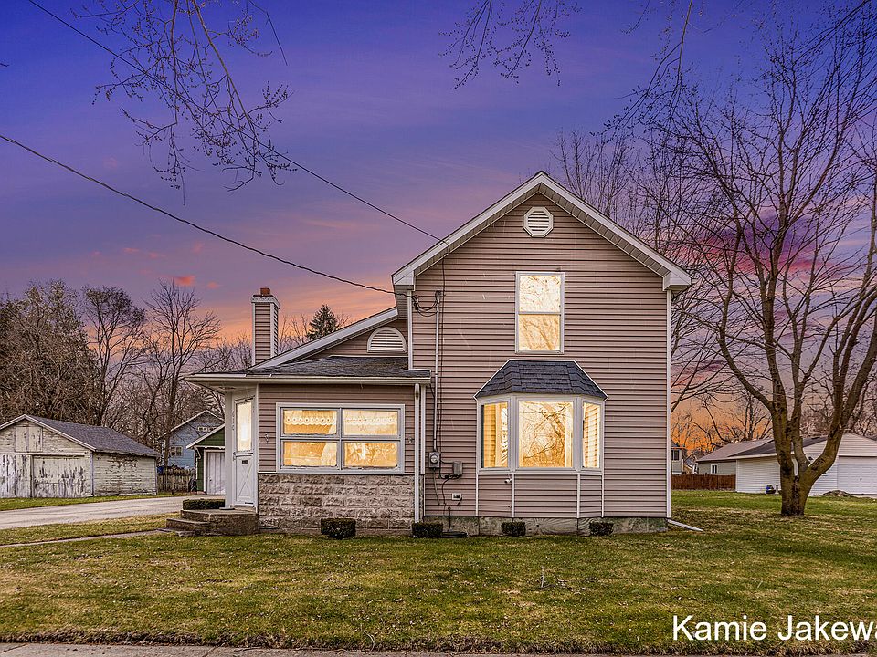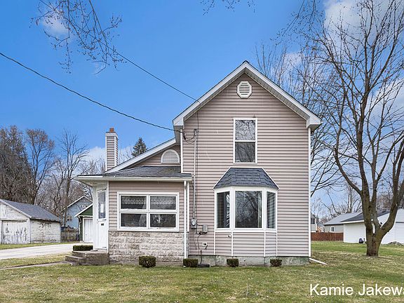 Spacious two-story home with 4 bed, 3 full bath for sale in the heart of Belding! It is conveniently located within walking distance to multiple restaurants, parks, shopping, and schools. The highlight of the main floor is the addition completed in 2005, creating a generous primary bedroom complete with a full bathroom, providing a peaceful sanctuary for rest and relaxation. In 2005, several updates were made to modernize the home, which include a refreshed living room, central air, a new furnace, roof, and water heater. The concrete driveway leads you up to the 2-stall garage, where you will find a loft for extra storage and a wood stove to heat the garage. The large yard has been very well maintained and offers a great space to enjoy activities. Schedule your showing today.