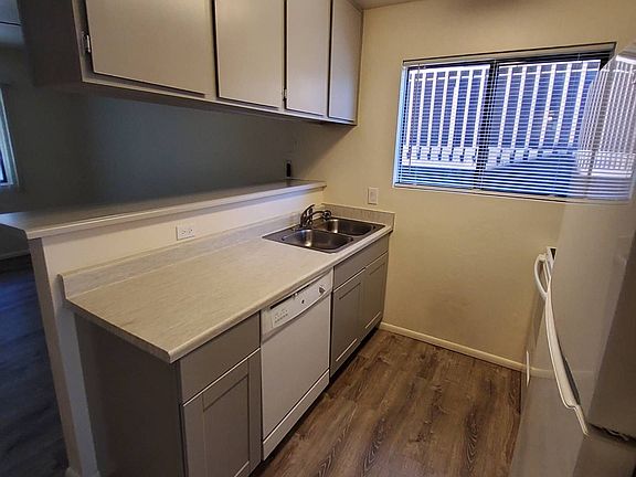 Freshly painted just for you. Recently updated 1 bedroom 1 bath corner condo with patio area to enjoy the great weather. Nice sized great room with new vinyl plank flooring & ceiling fan. Kitchen features a breakfast bar, new dishwasher, REFRIGERATOR, pantry & eating area. FULL bath with shower/tub combo. Good sized bedroom with large closet, arcadia door leading to private patio area. Community laundry room with several washers & dryers. $75 water/sewer/trash.