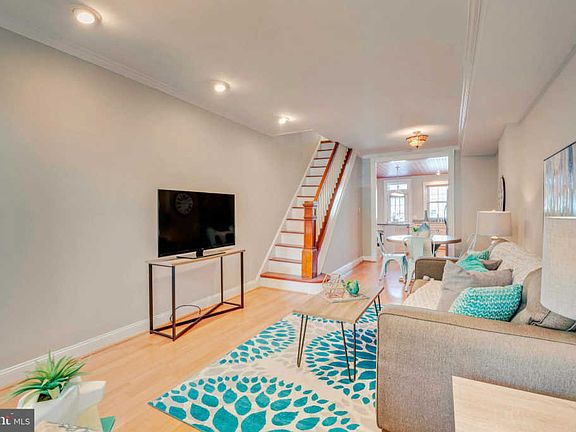 Classic Canton townhome located on a charming brick paved street just 1 block from Patterson Park. This 2 bedroom, 2 bath home with a parking pad is sure to make you feel right at home. Open floor plan features an upgraded kitchen with newer and upgraded off-white cabinetry, an island, granite countertops and replaced tin ceiling. The upstairs shows off a bit of the history of the Canton rowhome. Two bedrooms, one in the front and one in the back. The master suite has a huge walk-in closet and the bathroom in the middle features retro tilework and a skylight to boot. Basement is mostly finished with recessed lighting and replaced carpet. It could easily be converted into a 3rd bedroom.