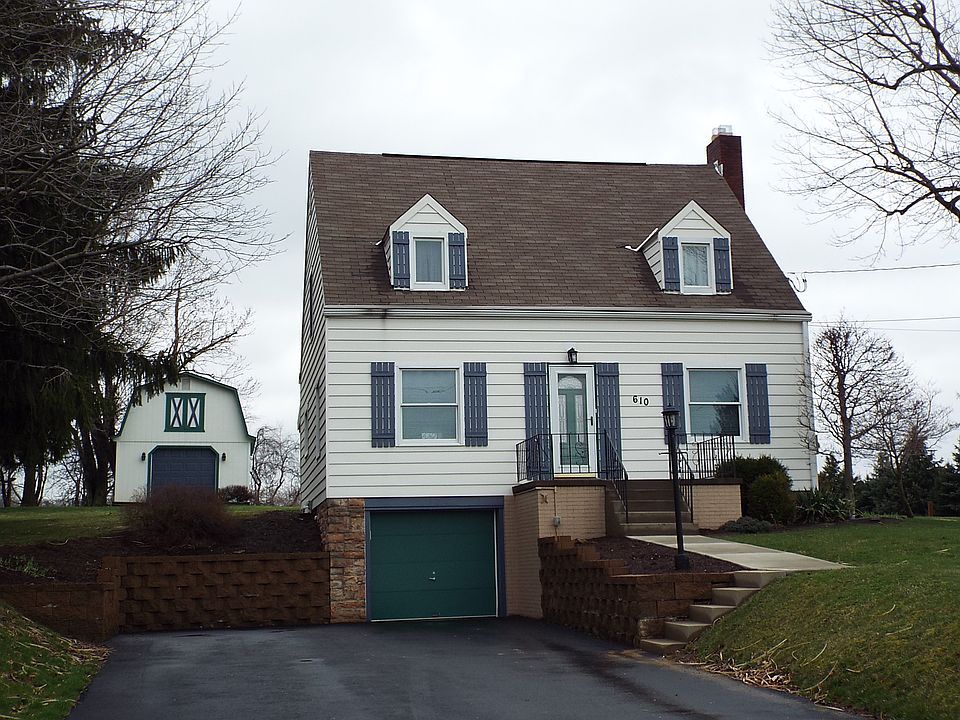 Set back nicely from the street, and nestled on nearly an acre, this inviting Cape Cod style home has so much to offer! The level driveway offers an abundance of parking space, along with a turn around area. The entry is flanked by an oversize living room with fireplace to the right and the dining room to the left. The kitchen includes all appliances and opens to a covered patio. Updated main level powder room. Walk-in coat closet in front and walk-in pantry near kitchen. The upper level features two bedrooms with exposed hardwood flooring and large closets. Unfinished dormer storage. Updated full bath. Lower level family room. Large laundry/utility room including washer, dryer, and 2nd refrigerator. Extra deep garage. Wonderful storage shed with full size garage door, wall heater, and loft. Covered patio overlooks fabulous rear yard that extends approx to rear tree line. Great location with convenient access to Rt 40/I-70.
