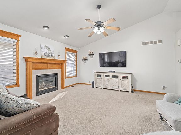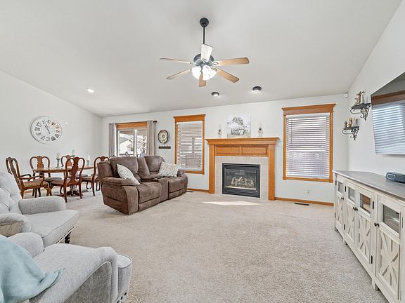 Welcome to this beautifully maintained 4-bedroom, 3-bathroom ranch-style home, offering a perfect blend of comfort and functionality. Situated in the desirable Southampton neighborhood, this home features a split floor plan with neutral colors throughout, creating a warm and inviting atmosphere. The spacious living room is highlighted by a cozy gas fireplace, perfect for relaxing evenings. A formal dining room provides an elegant space for entertaining, while the breakfast nook in the kitchen offers a casual dining option. The well-appointed kitchen boasts granite countertops, a gas range, pantry, and a refrigerator that remains with the home. The primary suite includes dual sinks and dual closets in the en-suite bath, providing ample storage and convenience. The finished basement features a concrete safe room, ideal for added security located inside the handsome sized storage room which is a necessity these days! Outdoor living is just as enjoyable with a covered deck overlooking the fenced backyard, perfect for entertaining or relaxing. The home's exterior was professionally painted just one year ago, giving it fresh curb appeal. Additional highlights include a two-car garage, a composition roof installed in 2017, and a hot water heater and air conditioner both replaced in 2020. Don’t miss the opportunity to own this move-in-ready home with thoughtful upgrades and a fantastic layout! Beat the Spring rush, set up your private tour today!