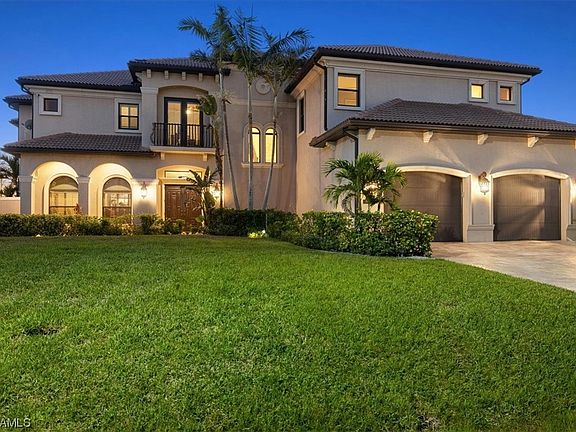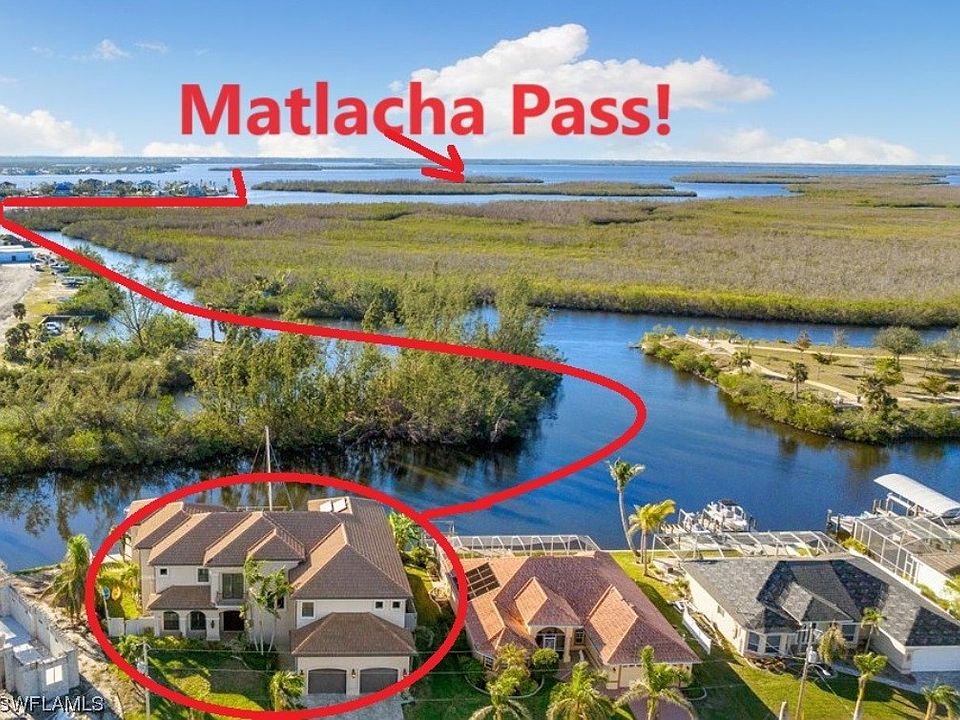 SELLER FINANCING! Elegant custom estate home with no HOA! Secluded neighborhood on western edge of Cape next to Matlacha with DIRECT GULF ACCESS. Georgeous VIEWS of Preserve and Park. Manatees and dolphin frequent waterway behind, as well as eagles, osprey, herons, and more. Impressive facade doesn't reveal home is built like a fortress - All concrete block exterior walls with concrete slab for 2nd as well as 1st floor. Direct sailboat access to Gulf & Great Calusa Blueway Kayak trail. 2 Master Suites, one on each floor. Downstairs master used as mother-in-law suite. Multiple balconies provide exquisite views from different vantage points. Travertine tile hand selected by owner during trip to Italy. Owner's suite upstairs is HUGE with private double door entry. Each bedroom has dedicated or shared bath. Big den on 2nd floor has huge balcony great for entertaining and family gatherings. Pool/spa overlook waterway. 2 docks/2 lifts (both 10K). Elevator. Garage is 2-cars deep holding 4 total or store trailer etc. Solar electric panels. Walk to 2 parks for many free amenities including walking trails, exercise equipment, playground, tennis, pickleball, and more. Plus charter schools nearby! Utilities Assessments PAID. Original Blueprints available for anyone wanting more info on home's construction. See realtor info for seller financing terms.