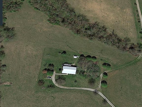 Honest Abe Log Frame Homes with walkout bsmt, stone fireplace with gas logs, basement has Fire Boss wood burning stove. Bsmt has 1/2 bath with rough in plumbing form a shower or tub. Walkout entrance in unfinished part of basement. Pin Oak trees along gravel drive.