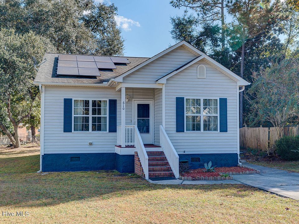 This is your chance to own a 3BR/2BA home that is close to just about everything in the area! This home has solar panels to help with utility costs. A covered front porch provides protection from the weather. Walk in to an open room with living and dining areas. Primary bedroom has its own bathroom Appliances convey. Great for first time buyer, investor, or someone downsizing.