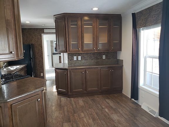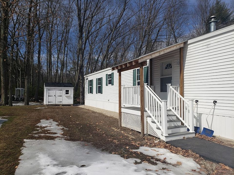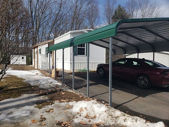 Like new singlewide home with many upgrades to include, 2 car - carport, upgraded kitchen cabinets, upgraded appliances, deck with trex flooring and vinyl rails, shed, generac , snowblower all included in this sale... Unoccupied for immediate occupancy, this home shows no wear... notice the ceiling height wood cabinets, tile backsplash, separate laundry room to covered deck, masterbedroom with master bath and glass shower enclosure, carpet and vinyl. Private shed in back for storage... *All pressure treated wood to be painted white at sellers expsense) * note only carport in park; Open house Sat, March 20, 11am - 1 pm ..