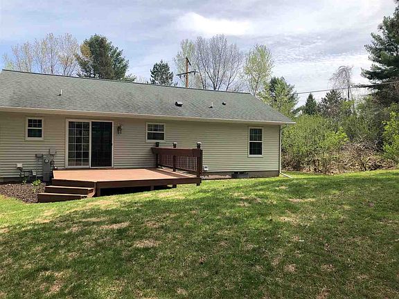 Do nothing but move right in to this immaculate 2 bedroom, 2 bath home nestled amongst trees with no neighbors and still within the city limits south of town. Master bedroom has walk in closet & master bath. Open concept living, kitchen and dinette area with new tile flooring and wood laminate. Patio doors off the dinette leads to a nice sized deck overlooking the private back yard w/fire ring and an unfinished 12 x 12 storage shed with all materials included to finish. Nicely landscaped all around.Kitchen has nice center island and all appliances are included. Basement is unfinished but is completely dry w/poured cement walls and is plumbed for a 3rd bath. Don't let this one slip away!!!!