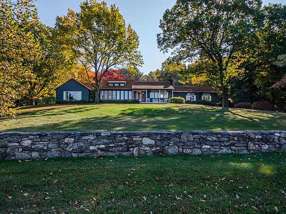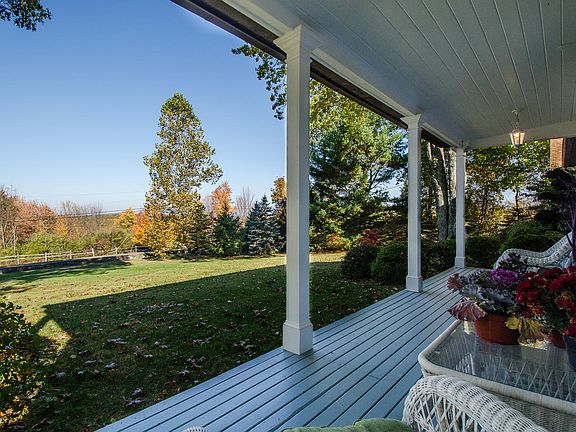 A picturesque setting on a rural country road minutes to the village of Millbrook rests this very well-designed home with a split living bedroom floor plan ideal for accommodating guests. Enter the great room, the heart of the entertaining space, with wood burning fireplace, coffered ceilings, and many windows bringing in the light and views. The master retreat has a sitting room ideal for an office or work-out area. A chef's kitchen is centered with an island open to the dining area perfect for relaxed family gatherings. Private yard with beautiful stone patio, stone walls and built-in fireplace.